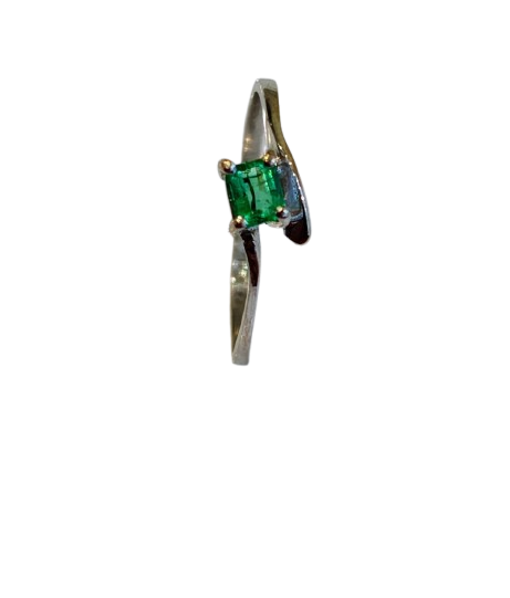 Anillo en Oro Blanco 18k con Esmeralda AN030